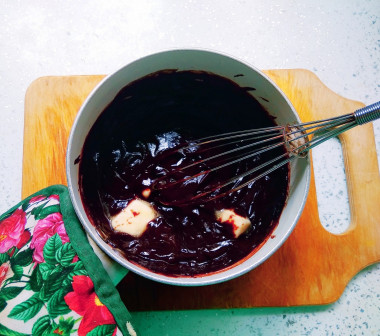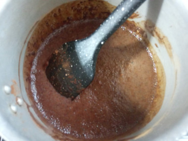 Поставьте сотейник на небольшой огонь и, при постоянном помешивании, доведите глазурь до однородного состояния. До кипения доводить ее не нужно, чтобы избежать появление пенки.