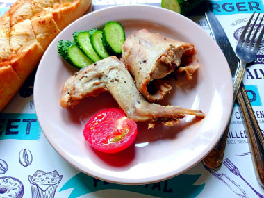 Полезные свойства крольчатины значительно превышают обычную свинину или курицу. В приготовлении мяса кролика не ничего сложного. Единственный, на мой взгляд, минус в том, что мясо готовится достаточно долго, прежде чем станет нежным, мягким и тающим во рту. Но, так как, готовит все духовка и стоять над ним не надо, время проходит очень быстро. А запахи, исходящие из кухни, говорят сами за себя. Для данного рецепта можно взять абсолютно любые части кролика. Но, чтобы мясо получилось вкусным и ароматным, лучше всего его на несколько часов замариновать. А подавать готовое блюдо можно как самостоятельное, так и в дополнение к любому гарниру. Так же рекомендую дополнить подачу овощным салатом или просто свежими овощами. Очень вкусно!