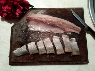 Как посолить селёдку кусочками в домашних условиях я думала несколько дней. Раньше я солила селедку только целиком. Нашла на любимом сайте прекрасный рецепт и сделала селедочку кусочками с луком. Всё очень просто, нужно лишь немного времени и терпения. Селедку выбрала хорошего качества и разморозила. Почистила, убрала косточки, сняла шкурку и порезала на небольшие кусочки. Лук взяла репчатый и порезала полукольцами. Выложила слоями селедку и лук в судочек, залила тёплым рассолом, плотно закрыла. По совету автора в рассол добавила гвоздичку. На 1 селедку весом 250 г добавила 1 ст.л.соли. Затем подождала 3 часа, как пишет автор, и убрала в холодильник. Уже через сутки потрясающая солёная селедочка готова! Дома сделать ароматную селедку кусочками совершенно несложно. Селёдочка получилась пряной с насыщенным вкусом, в меру солёной и невероятно вкусной. Кусочки солёной сельди прекрасно дополнила картошечка в мундире. Спасибо!