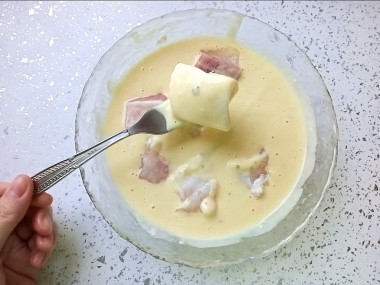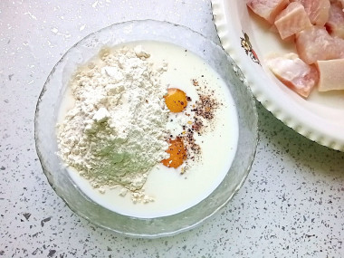 Кляр должен получиться однородным, без комочков, достаточно густой, чтобы он не сразу стекал с продукта, а обволакивал его. Оставьте кляр на 10 минут. За это время клейковина, содержащаяся в муке, набухнет, и кляр будет лучше.