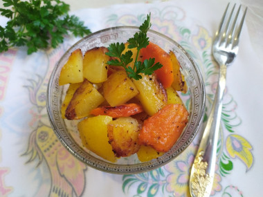 Захотелось придать яркости блюду, поэтому красиво нарезала морковь и отправила вместе с картошкой в духовку.