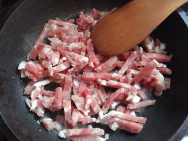 Поставьте на огонь сковороду и разогрейте ее без масла. Выложите на разогретую сковороду подготовленное мясо и выпарите из него полностью жидкость. Затем влейте столовую ложку растительного масла, добавьте немного соли и обжарьте мясо в течение 10 минут до легкого румянца, постоянно помешивая. О том, как подобрать идеальную сковороду, а также как правильно выбрать растительное масло, читайте в отдельных статьях, ссылки в конце рецепта.