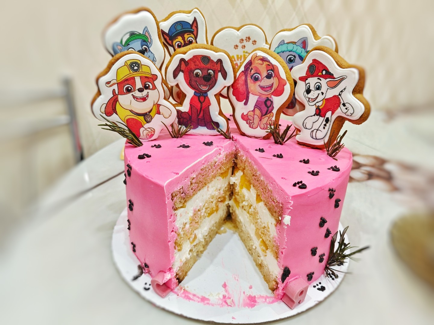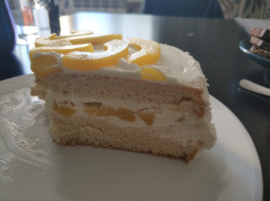 Торт с консервированными персиками получился очень привлекательным, сочным и воздушным, несмотря на мои небольшие изменения. Бисквит вышел невероятно мягким, пушистым и ярким. Для крема мне нужно было добиться большей стабильности, поскольку торт планировалось перевозить на праздник. Поэтому я добавила к сливкам творожный сыр для прослойки, а для выравнивания снаружи использовала смесь творожного сыра и масла. Однако главные герои этого десерта — персики. Это удивительно вкусное сочетание, настоящее летнее наслаждение. Пропитка бисквита сиропом от персиков — отличная идея, ведь она придает торту дополнительную влажность и сочность. Бисквит пролежал в холодильнике около пяти часов, после чего ещё пять часов простоял с начинкой, чтобы принять нужную форму. В будущем планирую попробовать приготовить крем исключительно на основе сливок. Уверена, он будет ещё легче и воздушнее. Тортик в итоге окрасила пищевым красителем, добавив его в крем для выравнивания. Десерт пришелся по вкусу и гостям, и маленькой имениннице.