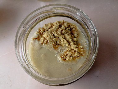 Залейте порошок теплой водой и хорошо перемешайте, чтобы не осталось сухих вкраплений в общей массе. Воды можно взять чуть больше или чуть меньше — смотря на то, хотите ли вы горчицу погуще или пожиже, консистенцию легко подстроить под свой вкус. Для приготовления лучше использовать нейтральную по вкусу фильтрованную или бутилированную воду. Если же вы используете воду из-под крана, имейте в виду, что она может придать блюду неприятный характерный привкус.