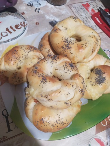 Очень нравятся такие бублики или калачи , особенно вкусные делают турки. Они их обильно посыпают семенами кунжута. Но у меня сегодня наши , с сыром внутри. Тоже очень вкусно. Благодаря маслу и сыру , тесто внутри получается слоистое.Сами бублики нежные, мягкие, вкусные.Конечно можно сделать их без мака. Тоже вкусно!Или посыпать зернышками разными, которые продают для хлеба.Подают их с чаем, молоком, можно на завтрак с кофе. Хорошо переносят заморозку. Делайте на здоровье.