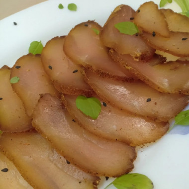 От приготовления котлет из курицы осталась куриная грудка, никак не могла решить что из неё приготовить. И решила её повялить. Нашла простой и понятный рецепт карпаччо из курицы в домашних условиях. Когда-то мы с мужем пробовали вялить куриные грудки, с тех пор осталась нитритная соль. Решила использовать именно её, ведь продукт не проходит термическую обработку. Добавила к ней чесночный порошок, щепотку острого перца и паприку. От себя добавила смесь итальянских трав. Как и указано в рецепте, грудку натерла смесью и оставила мариноваться в холодильнике на ночь, два раза переворачивала. Жидкости выделилось много, соль хорошо её вытягивает. Мясо туго обвязала веревочкой, завернула в марлю и подвесила в коридоре напротив окна, солнца там нет. Грудка вялилась четверо суток. За это время мясо усохло примерно на 25-30%, веревочка свободно болталась) Просолилась грудка идеально, специями напиталась тоже прекрасно. Очень приятный аромат чесночка, трав и перца! Мясо имеет однородную структуру и лёгкую корочку, закала нигде нет. Курочка вкусная, нежная, приятно жуется. Режется тоже хорошо, тонко. Отличный рецепт простой и вкусной закуски!
