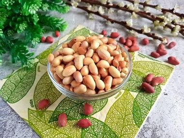 Готовый жареный арахис с солью остудить и можно подавать на стол. Это прекрасная закуска к пиву!