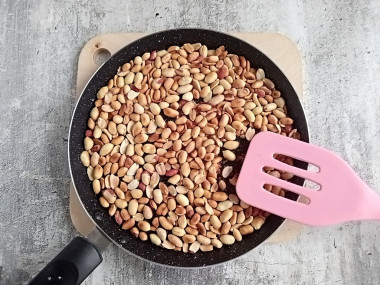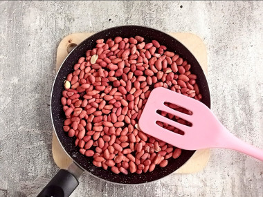 Как пожарить арахис с солью на сковороде? Неочищенные орешки арахиса пересыпать на большую сухую сковороду с толстым дном (можно использовать чугунную сковороду), не добавляя никакого жира или масла.