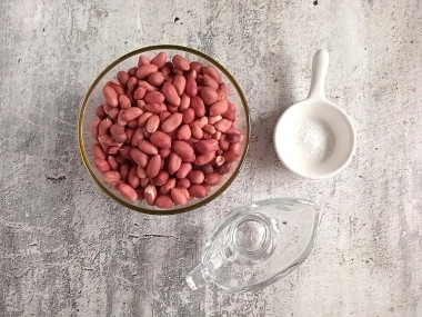 Арахис предварительно промыла и обсушила полотенцем. Затем обжарила на медленном огне до появления приятного аромата. При этом орешки начинают потрескивать и шелуха легко очищается. На чистку у меня ушло минут 20).