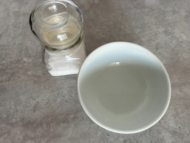 Далее следует приготовить специальный соленый раствор для орехов. Для этого соль растворить в небольшом количестве чистой питьевой воды. Воду можно предварительно немного подогреть, чтобы соль лучше растворилась.