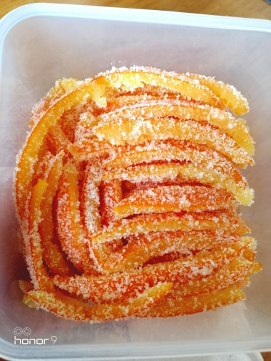 Пасха на носу и очень захотелось сделать что-то своё. И поняла, кулич без цукатов, как-то скучновато... Начала искать, как их сделать самой и нашла, на мой взгляд, потрясающе простой и понятный мне рецепт. Ничего лишнего. На деле было не очень просто, пару раз пришлось мыть микроволновку, но не критично. Была поставлена задача и я твёрдо решила доварить корки до логического конца, когда они станут мягкие, прозрачные и почти совсем без горчинки. Я этого добилась после 6 цикла. Вот что получилось! Они красивые и аппетитные на вид. А на вкус мягкие сладкие с апельсиновым вкусом - натуральные, как в детстве делала моя бабушка. спасибо за рецепт!