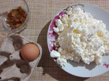 Курагу заменили на изюм. Залила его на пару минут кипятком и промыла в проточной воде. Выложила в ситечко, чтобы стекала лишняя вода и занялась творогом.