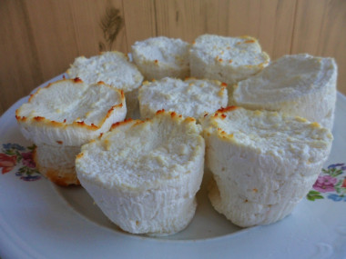Взбила яичный белок в устойчивую пену. Для этого 3 минуты взбивала миксером на небольшой скорости и 2 минуты на самой большой скорости. Аккуратно соединила взбитый белок и творог, в который уже добавила изюм.