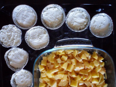 Нужно было быстро приготовить какой-нибудь десерт на обед. Нашла рецепт необычных диетических сырников в духовке без муки и сахара. Тесто для сырников сделала с помощью блендера и распределила по одноразовым формочкам. Чтобы сэкономить время поставила их в духовку вместе с формой, в которой собиралась запечь картофель для гарнира. Сухофрукты внутрь класть не стала. Просто тем, кто не на диете полила сырники сгущенкой. Получилось очень вкусно и без добавок. Спасибо большое за рецепт!