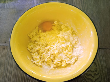 Как сделать песочно дрожжевое тесто? Подготовьте все необходимые ингредиенты. Размягченный при комнатной температуре маргарин (можно использовать сливочное масло) смешайте с просеянной пшеничной мукой и перетрите ингредиенты в мелкую крошку.