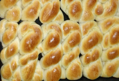 Скисло молоко, но это не значит, что его нужно отправлять в мусорку. А нужно отправить в выпечку. Я выбрала такие булочки на кислом молоке. Не хотела сладкие, и вот они даже без сахара. Сделала форму в виде косички.