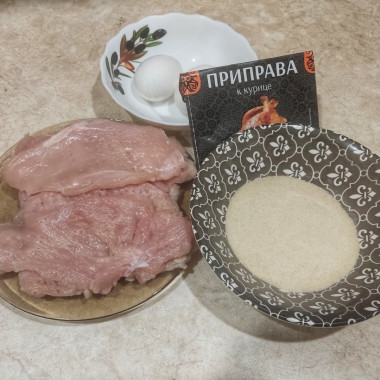 Как пожарить куриное филе в панировочных сухарях на сковороде? Подготовьте все ингредиенты. Куриное филе хорошо промойте в проточной воде, нарежьте на небольшие тонкие кусочки-пластинки. Еще раз мясо курицы промойте и обсушите бумажными полотенцами. Чтобы филе лучше и быстрее прожарилось, кусочки мяса отбейте кухонным молоточком. Если у вас замороженное мясо, то рекомендую прочитать статью о том как правильно размораживать продукты. Ссылка под рецептом.