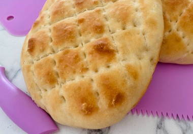 Когда тесто хорошо поднимется и увеличится в объеме, обомните его, разделите на 4 части и выпекайте толстый лаваш в духовке. Не допускайте того, чтобы тесто перестояло, поскольку оно перекиснет и выпечка выйдет не вкусной. Подошедшее тесто становится пушистым и воздушным - лаваш из него получится очень мягким и пышным.