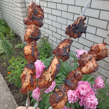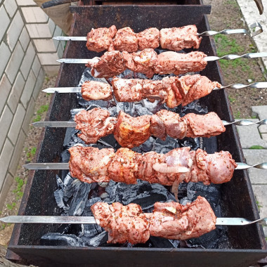 Маринованное мясо готовьте на шампурах над горячими углями. Не забывайте поворачивать со всех сторон, чтобы мясо равномерно прожаривалось.