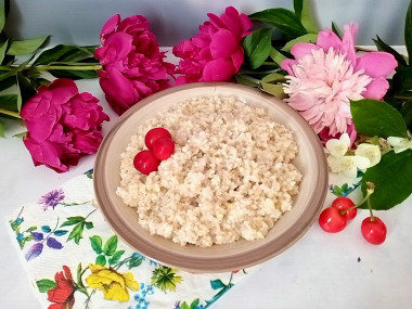 Ячменная каша на воде получилась рассыпчатой и ароматной. Я взяла дроблёную крупу - ячку. Промыла в нескольких водах и замочила на один час в тёплой воде (хоть автор и не советует, но я решила перестраховаться). Варила на среднем огне 30 минут, затем по совету автора завернула кастрюльку полотенцем и оставила на 2 часа. Очень вкусно в прикуску и домашним коровьим молоком. Каша прямо рассыпается во рту, а молоко добавляет сливочного вкуса. На завтрак - идеально!