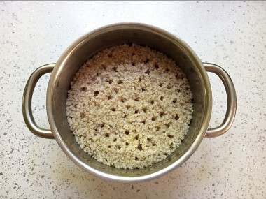 Залейте крупу в соотношении 1:2 кипятком. Оставьте минимум на 5 часов, я оставляла на ночь.