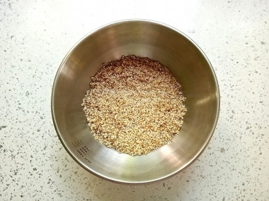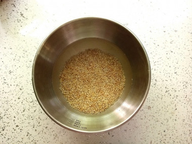Цельное зерно я в продаже не нашла, поэтому взяла дробленную крупу. Хорошо ее промыла и залила горячей водой на два часа. За это время почти вся вода впиталась. Остаток жидкости слила и залила ячку двумя стаканами фильтрованной воды (крупы брала пол стакана). После закипания варила примерно 40 минут на самом слабом огне.