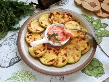 Для лёгкого перекуса пожарила кабачки кружочками на сковороде. Порадовало то, что эта закуски готовится очень быстро.
