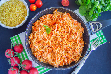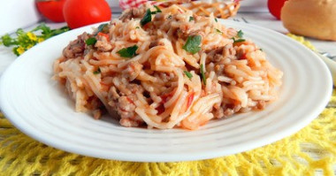 Вермишель с фаршем это одно из моих любимых повседневных блюд. Потому что делать его очень легко, а результат всегда вкусный. С таким блюдо справится даже начинающий осваивать кулинарные азы. На кухне я прикладываю минимум усилий и вся семья вкусно и сытно накормлена. Автору огромное спасибо за рецепт!