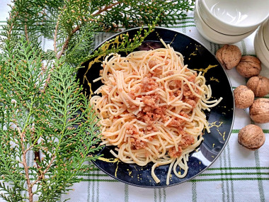 Люблю такое блюдо - сытно и очень вкусно, а главное все просто и быстро. Макароны могут быть любыми, например, вот в таком варианте.