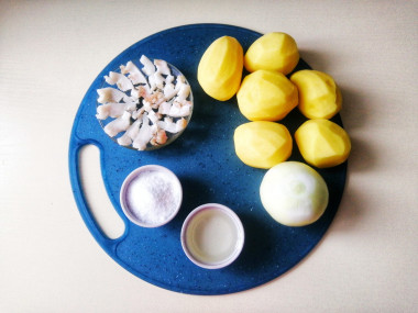 Калорийность продуктов: Картошка, Сало, Лук репчатый, Растительное масло, Зелёный лук, Соль
