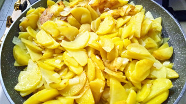 Жареная картошка с салом и луком на сковороде