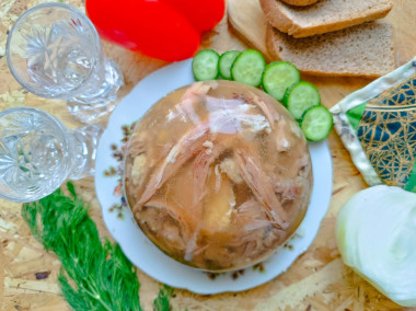 Подаем холодец через 8-10 часов после полного застывания. Присыпаем рубленой зеленью и приправляем горчицей.