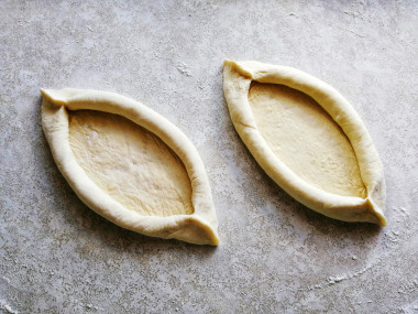 Разверните тесто, края защипите, формируя лодочку. Таким же образом сформируйте остальные лодочки.