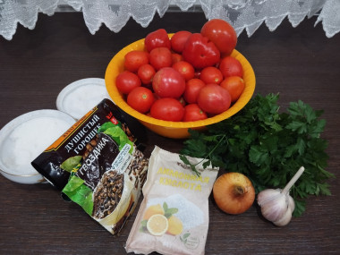 Как сделать помидоры на зиму хрустящие? Приготовьте все ингредиенты для заготовки. Помидоры должны быть спелыми, но твердыми, качественными и без наружных повреждений. Промойте тщательно помидоры под проточной водой, откиньте на дуршлаг, дайте воде стечь. У места крепления плодоножки сделайте проколы зубочисткой у каждого плода. Это поможет сохранить их целостность при заливке кипятком. О заготовках читайте отдельную статью под шагами.