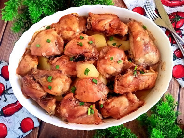 Блюдо просто шикарное! Картошка так хорошо пропиталась мясным соком, такая нежна и вкусная! Курочка мягкая, ароматная с золотистой корочкой!