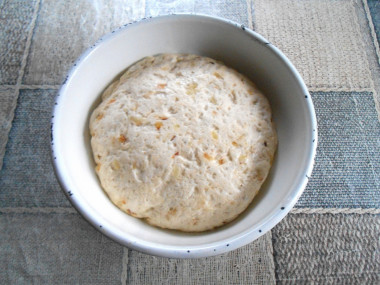 Тесто должно собраться в шар, стать гладким, эластичным, перестать липнуть к рукам. Шар из теста положите в миску, накройте миску сверху полотенцем и поставьте снова в теплое место примерно на 40-60 минут. Через указанное время тесто должно подойти, обомните его, снова накройте полотенцем и дайте еще раз подняться.