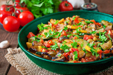 Мне нравится рецепт тушеных кабачков, баклажанов, болгарского перца и помидоров. Сезонное блюдо.