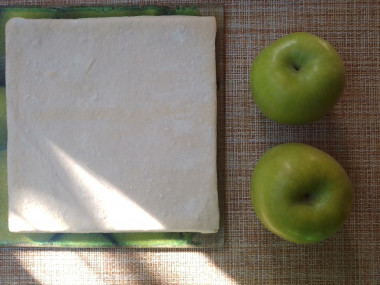 Захотелось сегодня сделать вкусную печеность с яблоками. Выбрала слоеные пирожки с яблоками и за дело!