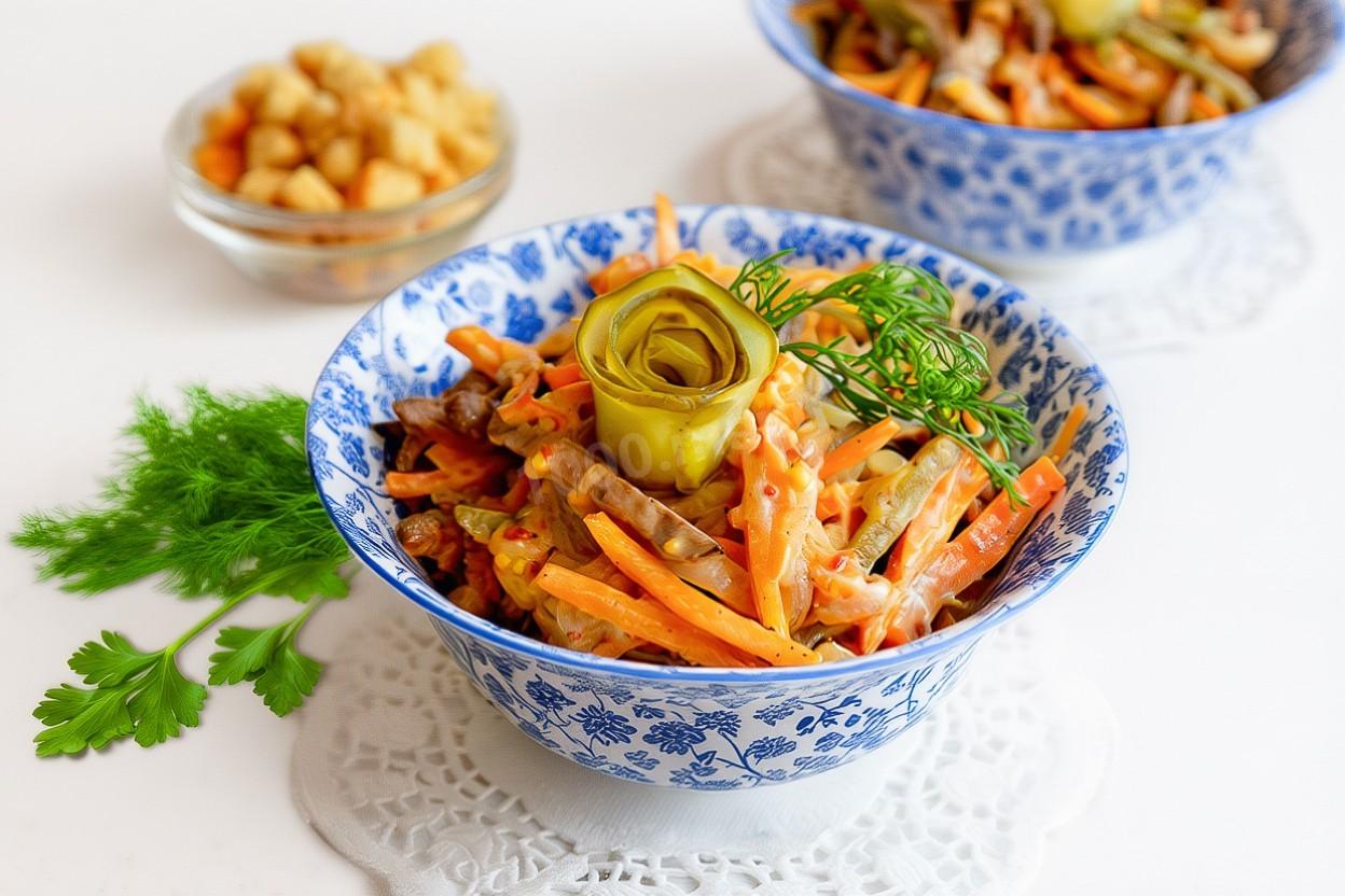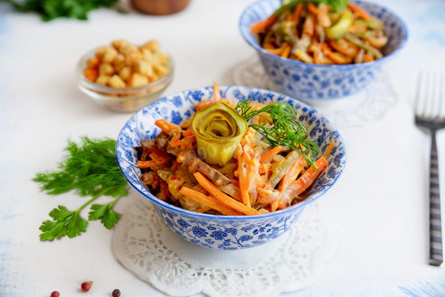 Шаг 11. Как подать вкусный салат с печенью, солеными огурцами и морковью?