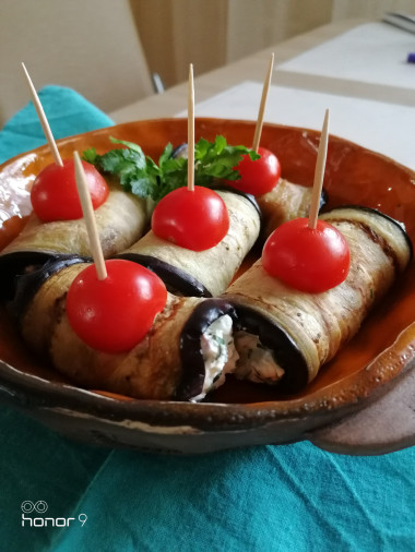 Рулетики из баклажанов очень хорошо сочетаются с разнообразными начинками, поэтому экспериментировать с этим рецептом можно бесконечно.