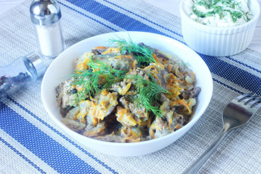 Подавайте печень в сметане к столу с любым гарниром. Приятного аппетита!