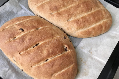 Юлия1, спасибо за рецепт! Вкусный хлеб получился. Замешивала вручную, пекла в духовке. Один батончик сделала с изюмом—отлично получилось!