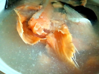 Никогда не выбрасываю оставшиеся после разделки горбуши головы и хвосты. Замораживаю их, а потом, когда захочется вкусного супчика, достаю их холодильника. Сегодня как раз такой "рыбный" день, а значит пора варить уху из головы и хвоста горбуши. В этот раз использовала также рыбный хребет с небольшим количеством мякоти.