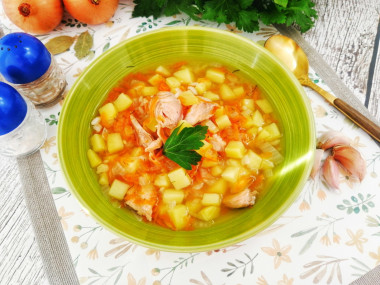 Вкусный, лёгкий, быстрый супчик. Готовлю горбушу в духовке, а из отходов этот суп. Таким образом рыба используется максимально эффективно. Спасибо за рецепт!