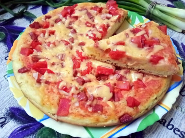 Сделала тесто по рецепту. А начинку свою. Немного не поднялось. Делала в духовке. Возможно недодержала или тесто жидковато сделала. Похож на омлет. Но это моя вина. Рецепт хороший. Пару месяцев назад делала по нему же. И получилась пышная пицца. Возможно от качества муки зависит. Или густоты теста. Дети сейчас улетают за обе щеки. Спасибо😉