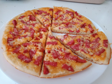 Спасибо за рецепт!!! Начинку делала свой вариант (колбаса, сыр, майонез, кетчуп). Пицца получается вкусная. У меня сковорода 24 см, поэтому тесто "растянула" на 3 пиццы (любим тесто тоненько). Отличный быстрый вариант!!!