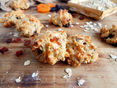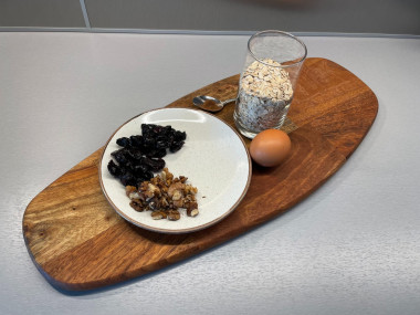Как сделать овсяное печенье без сахара и без муки? Сначала подготовьте продукты. Сухофрукты можете брать ваши любимые, для дополнительной сладости можете добавить мёд или сахарозаменитель. Вместо сухофруктов можно взять бананы. Учтите, что при добавлении мёда или бананов консистенция теста может измениться - возможно, понадобится немного больше или меньше овсяных хлопьев, об их свойствах читайте в статье после рецепта.