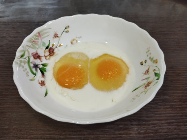 Влейте в яичную смесь молоко и снова тщательно перемешайте смесь в течение примерно пары минут.