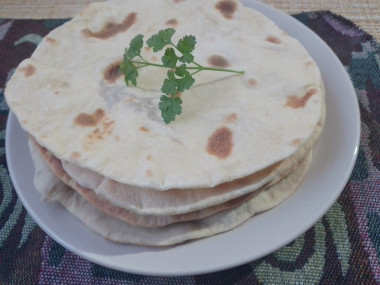 Тесто получилось мягким, приятным в работе. Когда раскатывала лепешки не делала их очень тонкими. Тогда при обжаривании они раздувались и в последствии в них действительно можно было положить начинку, как и пишет автор.
