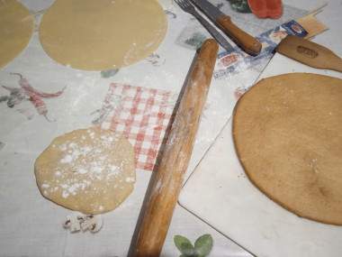Раскатываем каждый шарик в круг, чтобы тесто не вздулось при выпечке, накалываем его вилкой.